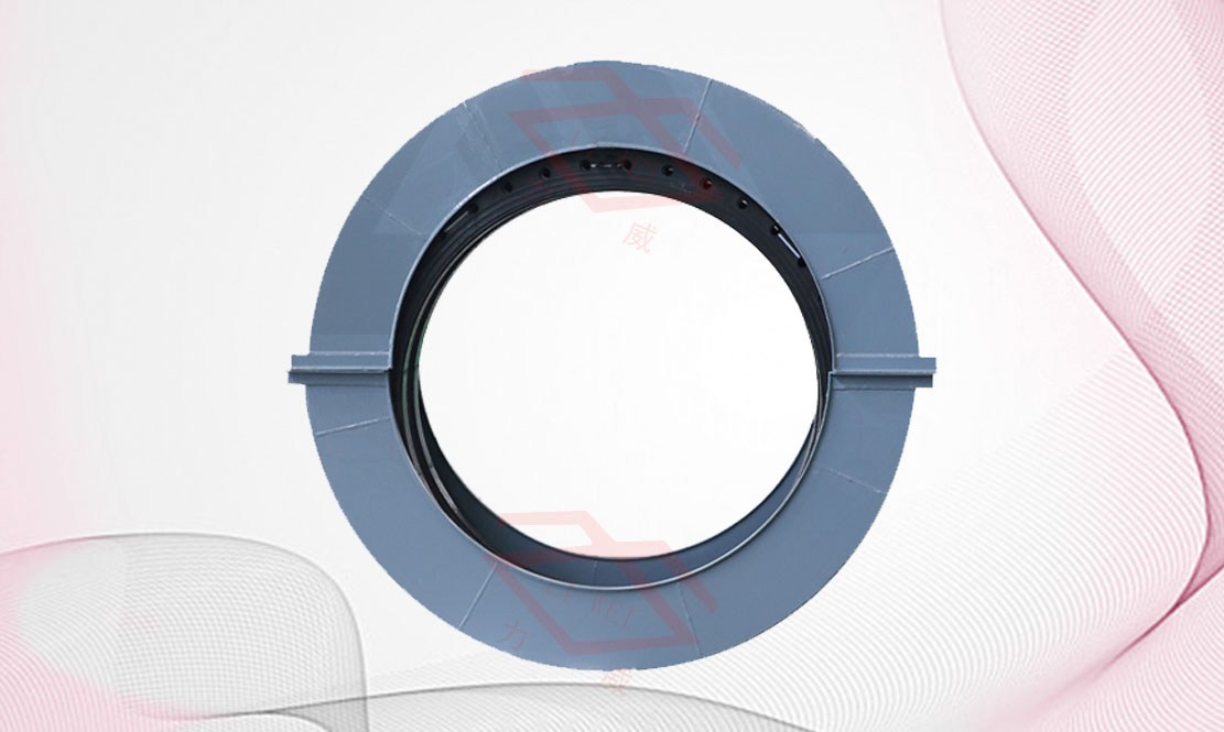 此地埋装置为两个半圆形中空组合而成,将橡胶接头和管道平焊法兰全部装入体内,两端设有两半圆形小平面带钢骑于两侧法兰外管壁,两端立面支撑根据土层深度而定,足以承受外压负重。